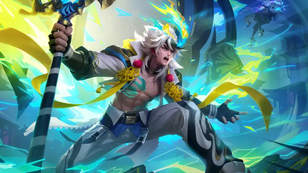牛魔这个辅助控制能力强得很,他的一技能是标记敌人,然后队友打敌人的话,能对敌人造成额外印记伤害,二技能是击飞敌人,大招也是范围性的击飞控制技能,玩牛魔一定要带闪现,因为牛魔的大招拥有短暂的延迟,如果不带闪现的话,牛魔的大招就很容易打空,如果带闪现的话,牛魔的大招配合上闪现,一下子就能让敌人反应不过来,瞬间被你的大招击飞。